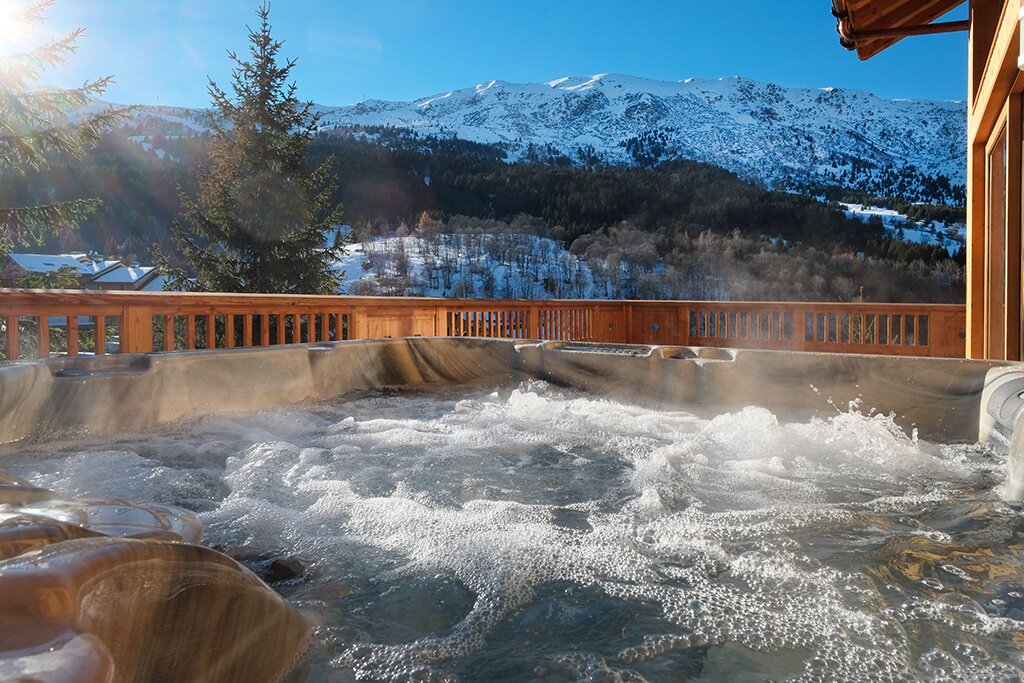 There’s no better way to finish a day skiing than in sat in a warm bubbling hot tub with a glass of something cold.