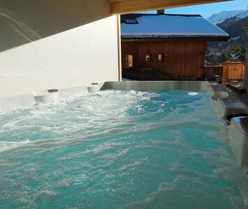 In 2018, we spruced up our Hotel's spa facilities and built a small outdoor pool. Head outside (you can pass the bar on the way) and bask in the warm water whilst looking out onto the picturesque village of Lech.