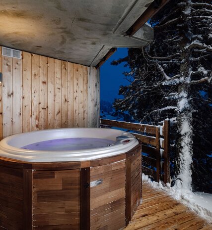 Soaking in the tub is the perfect place to unwind after a day skiing, one of the most obvious benefits of a hot tub is to ease tensions. The soothing effect of the warm water and massaging action helps relieve physical, emotional and mental stress. Water supports the body and takes weight off joints, and soaking in the tub is known to relax tense muscles, joints and tendons.