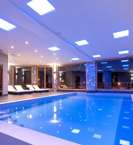 A number of our chalets have saunas, tubs or pools, but why not head to Bear Lodge in Les Arc this winter and enjoy the amazing spa facilities with pool, sauna, steam room and jacuzzi, massage suites and exercise room. Positioned on the piste at 1950m the snow-capped alpine backdrop will make a refreshing change from your local gym.