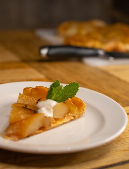 Pear & Thyme Tarte Tatin: Paired with crème fraîche for an elegant twist.