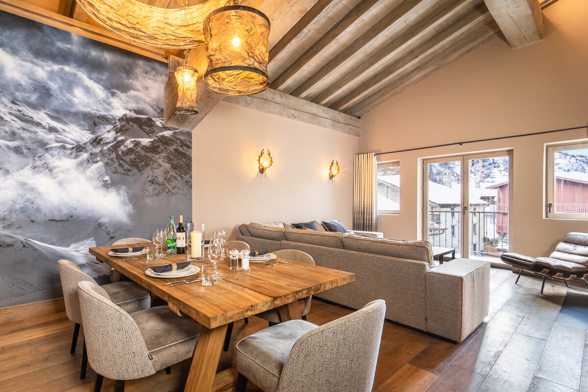 Tucked in between the chapel and the church in the historic centre of Val d’Isère, 100m from the Tourist Office and High Street and only 150m from the edge of the piste. (Registration No. 73304 000959 U0).