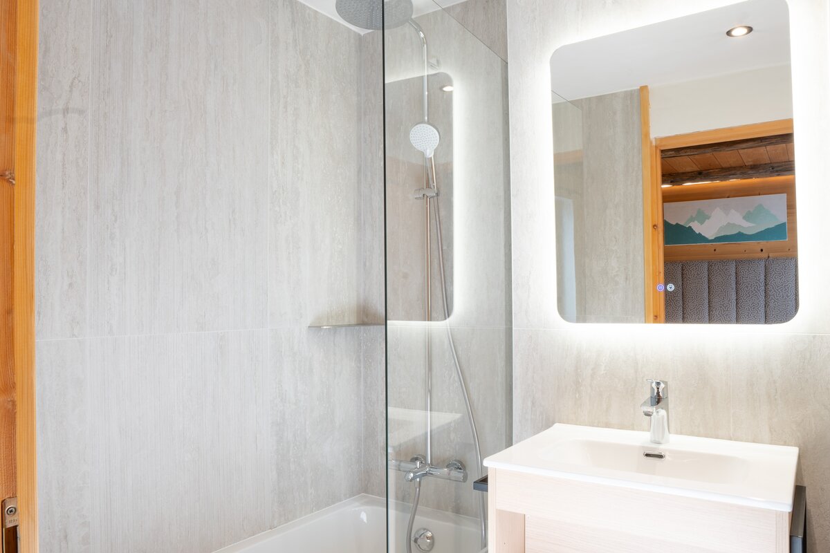 Situated on the Santons piste and a 10 minute walk across the Solaise nursery slopes to the village centre. A green/blue piste leads a few hundred yards down to the Olympique lift area and ski school meeting point from behind the chalet but our driver service will drop you there if you wish. (Registration No. 73304 000967 58).