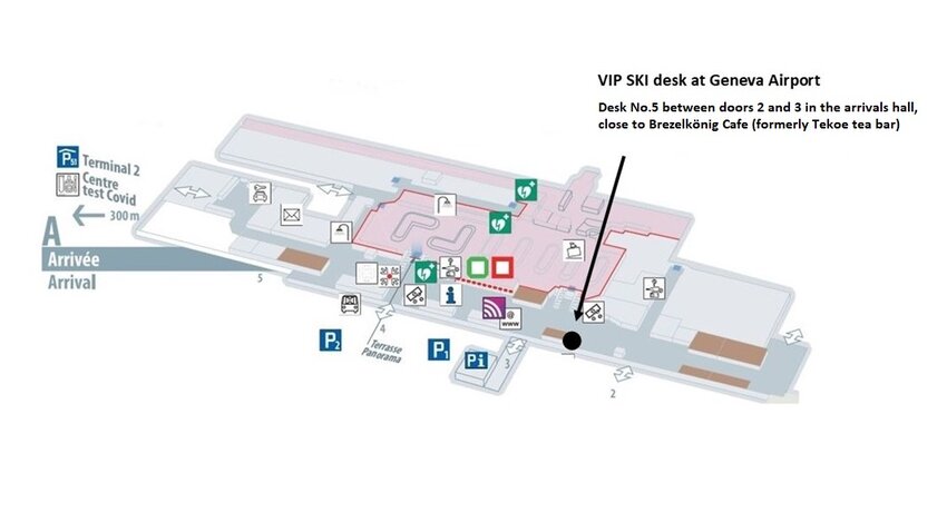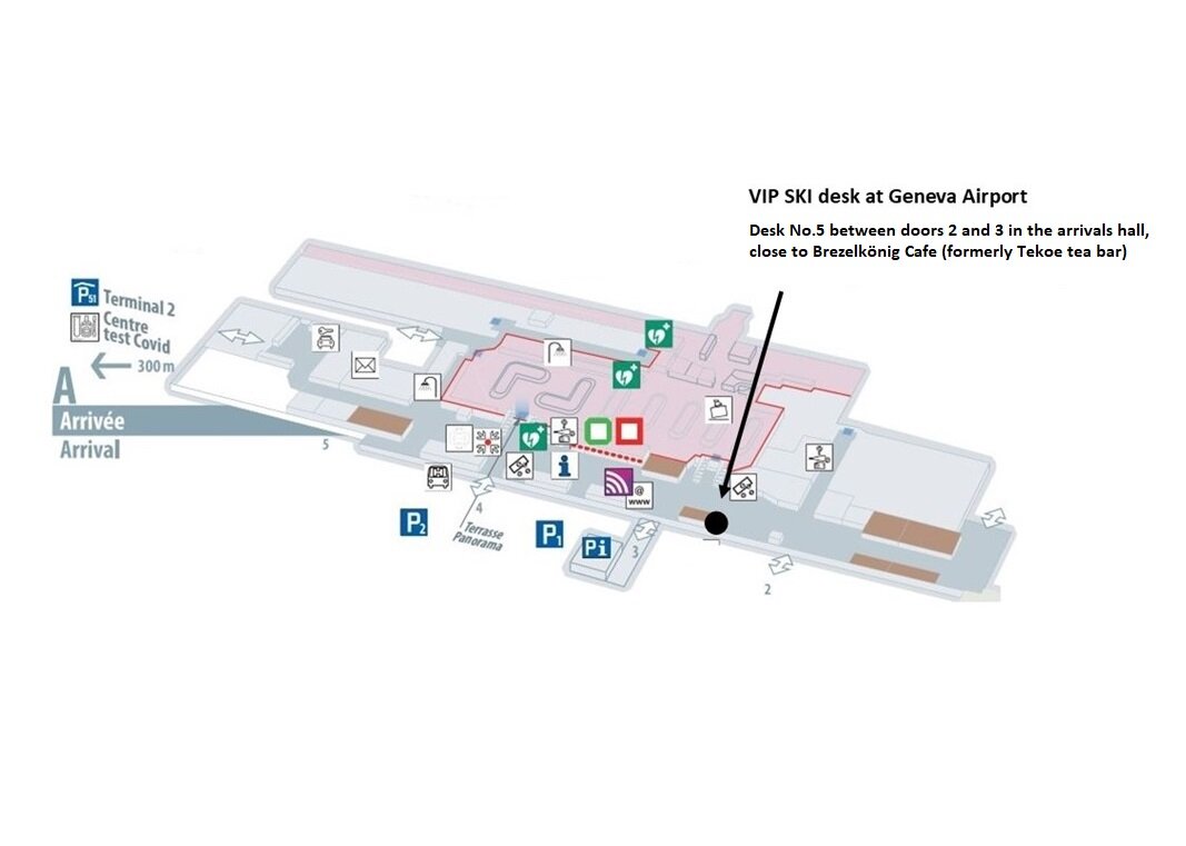For those booked on our complimentary coach from Geneva, please make yourself known to our airport representative at the VIP SKI desk in the main terminal (T1) as soon as you arrive. You will find the team at Desk No.5 between doors 2 and 3 in the arrivals hall, close to Brezelkönig Cafe (formerly Tekoe tea bar).
